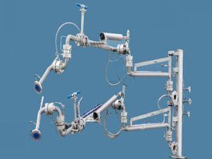 4、鶴管旋轉(zhuǎn)接頭和管道間的連接,一定要采用軟管連接,盡量使用金屬軟管連接,剛性連接是不行的。